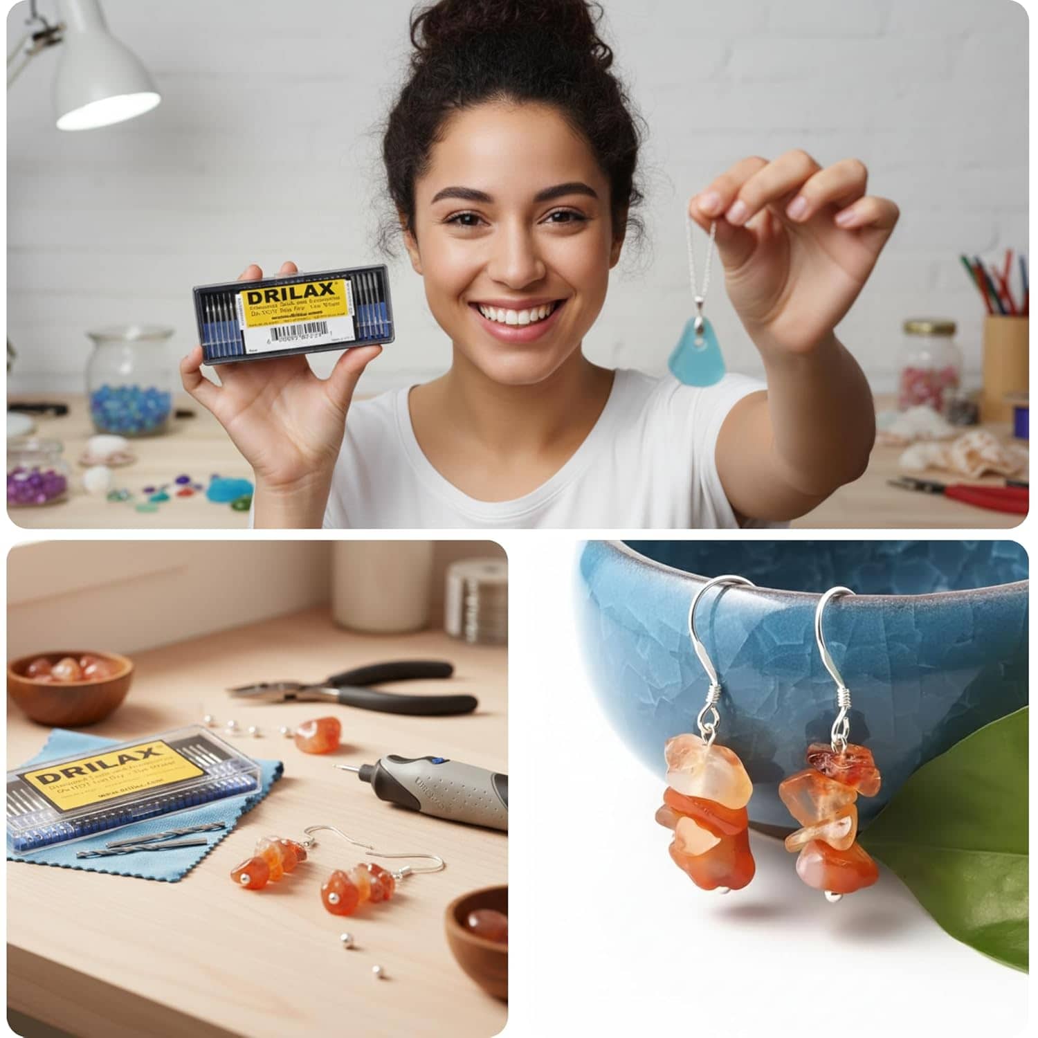 Brittle materials like sea glass and stones often crack or shatter when using standard drill bits. The Drilax 2mm Diamond Drill Bit Set provides the industrial hardness needed to micro-drill delicate materials without causing fractures. The result is a clean, boutique-quality finish for every pendant, earring, and craft project you create.