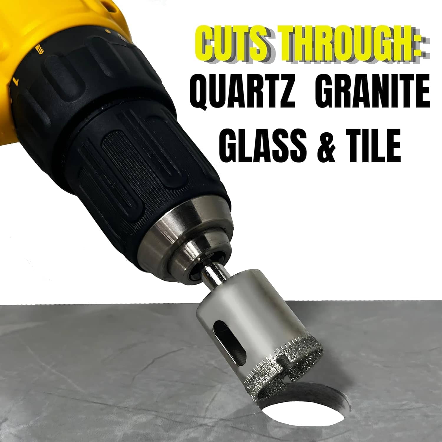 Produces smooth, round openings in tile, glass, porcelain, granite, quartz, and stone. -