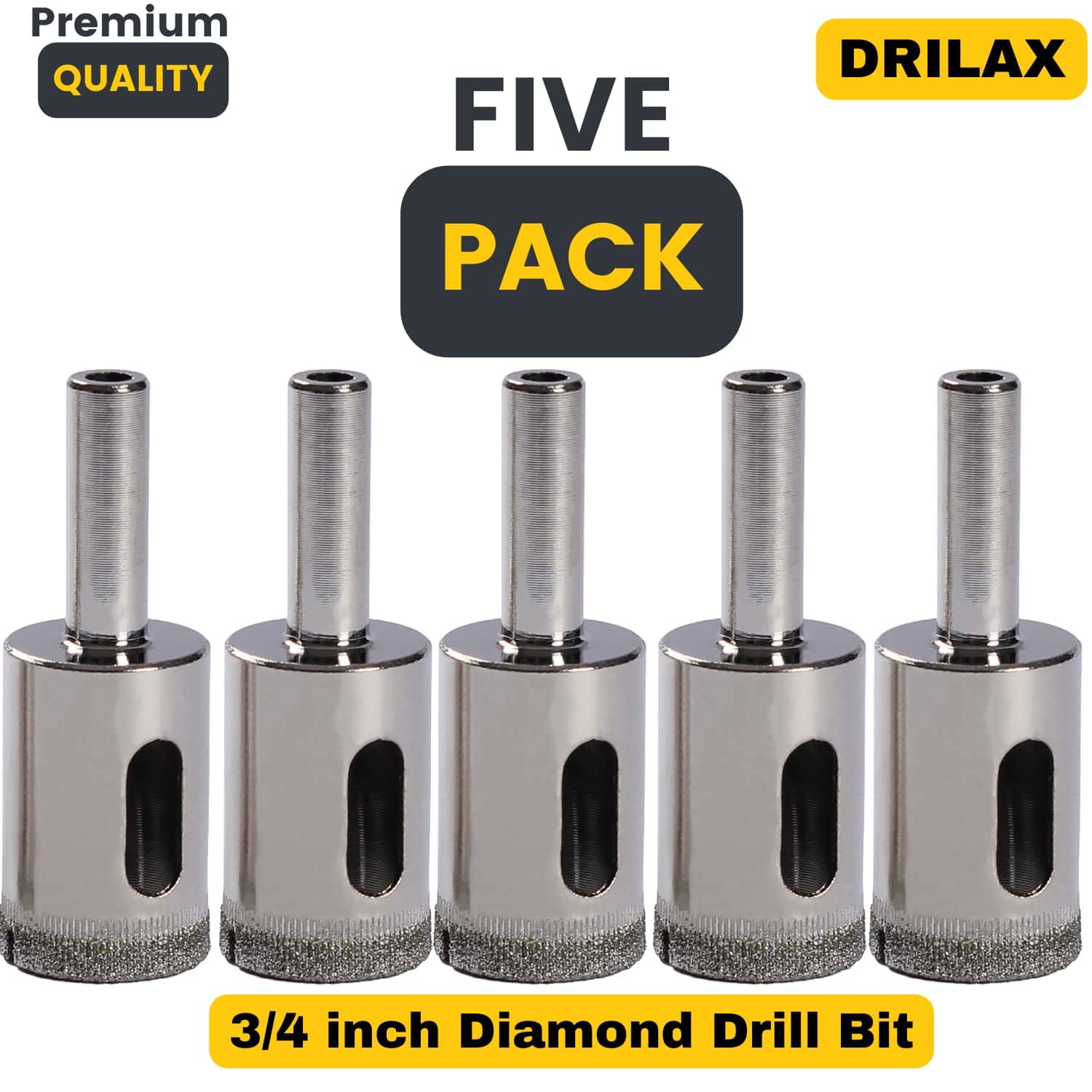 Drilax 3/4" Diamond Drill Bit Hole Saw Set – 5‑Pack Wet Drilling Bits for Ceramic, Porcelain, Glass, Granite & Quartz